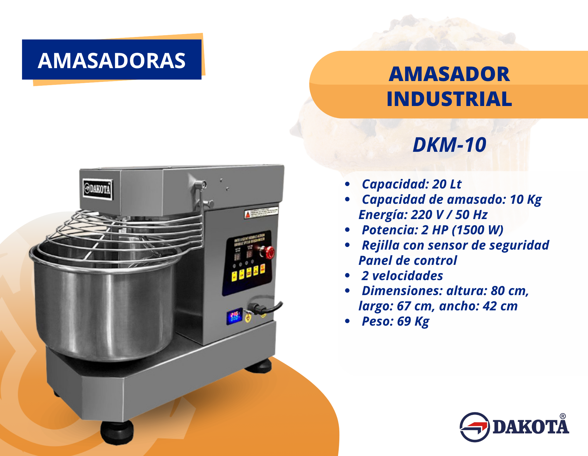 - Capacidad de amasado: 10 Kg Energía: 220 V / 50 Hz
