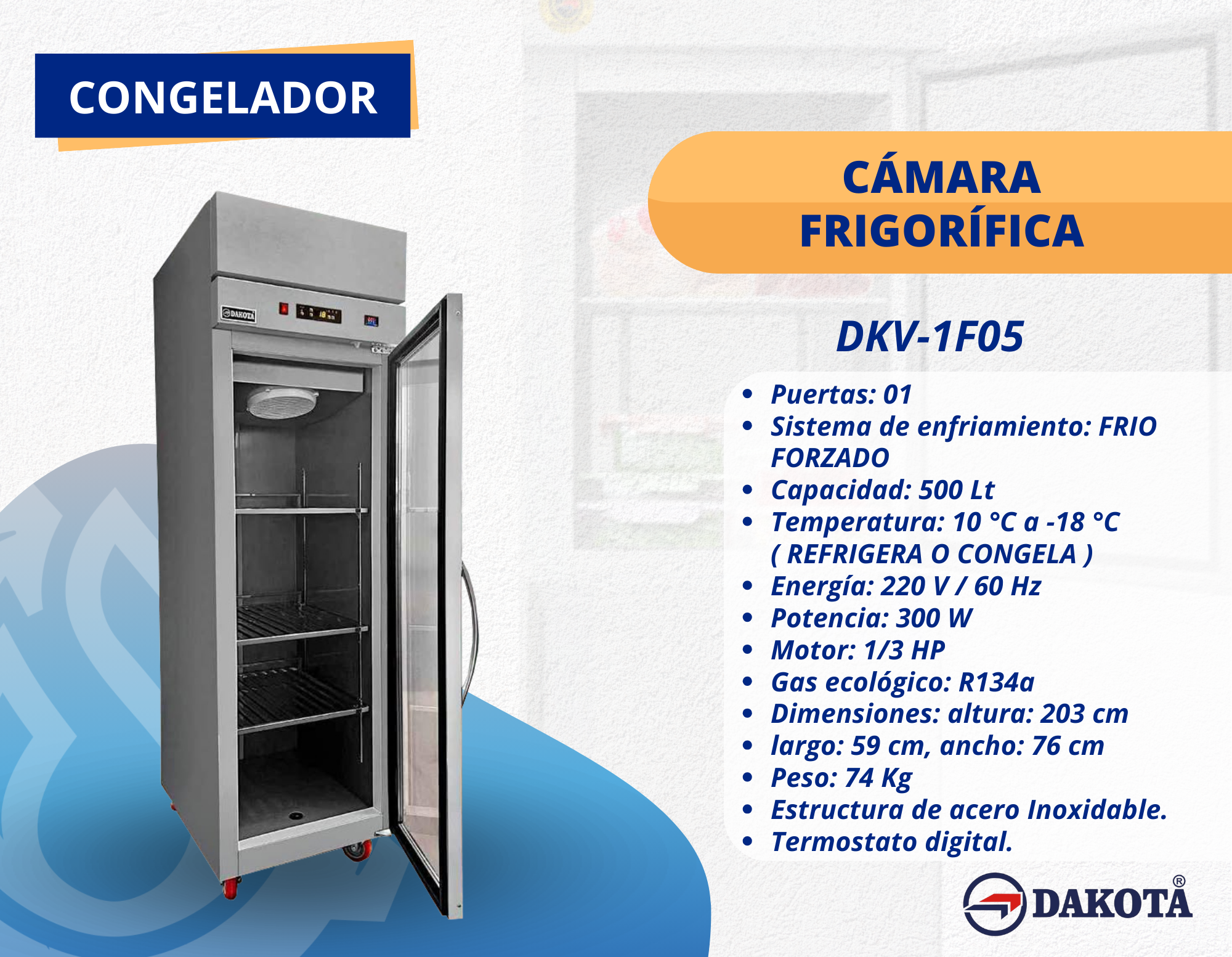 La Cámara Frigorífica de 500L con frío forzado mantiene bebidas, helados y alimentos entre 10 °C y -18 °C. Fabricada en acero inoxidable, con motor 1/3 HP, termostato digital y gas ecológico R134a, garantiza eficiencia, durabilidad y frescura en negocios de alto consumo.