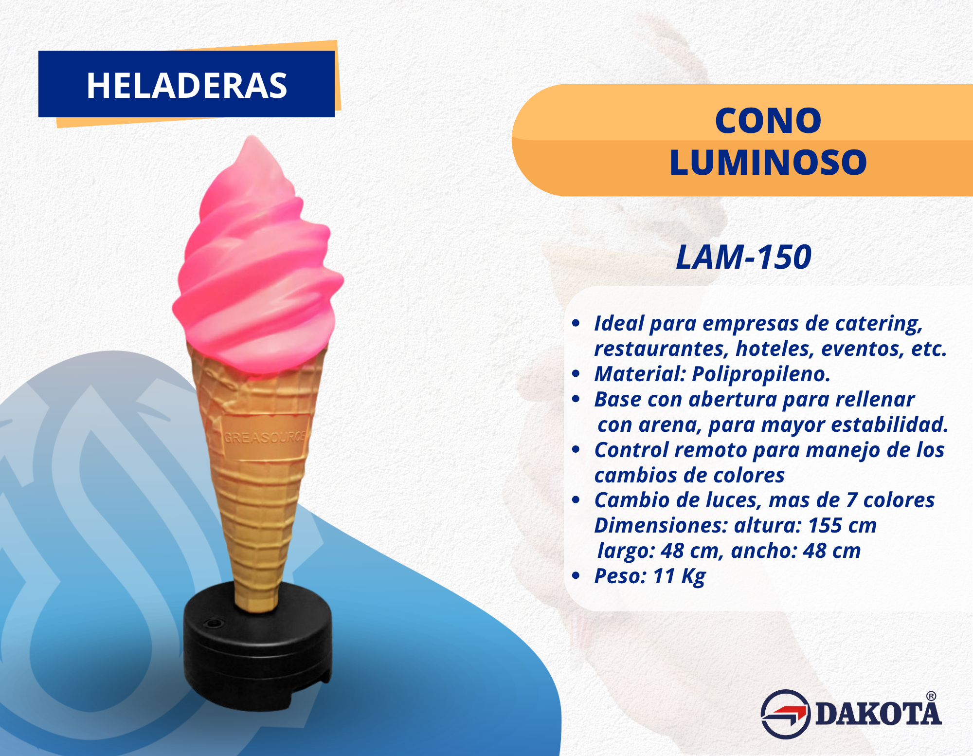 Perfecto para heladerías, restaurantes, hoteles, empresas de catering y eventos, este cono luminoso de helado LED es una opción llamativa y moderna para destacar tu negocio. Fabricado en polipropileno resistente, cuenta con una base con abertura para rellenar con arena, brindando mayor estabilidad.