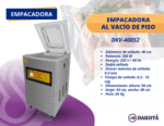 La Empacadora al Vacío de Piso DKV-400S2 es una máquina profesional diseñada para negocios que requieren un sellado potente, continuo y de alta capacidad. Con un diámetro de sellado de 40 cm y sistema de doble sellado, garantiza cierres firmes y herméticos incluso en productos de mayor volumen.
