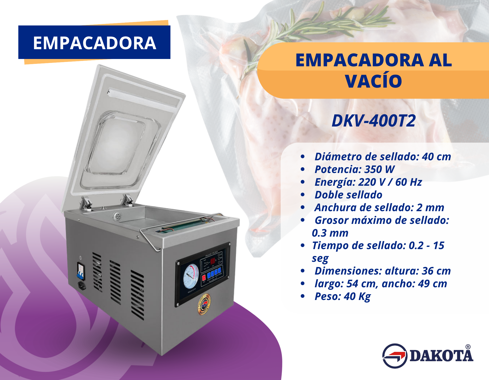 Con una estructura resistente y dimensiones compactas, la DKV-400T2 es perfecta para negocios como restaurantes, carnicerías, pescaderías, supermercados y emprendimientos que requieren un envasado profesional y eficiente.