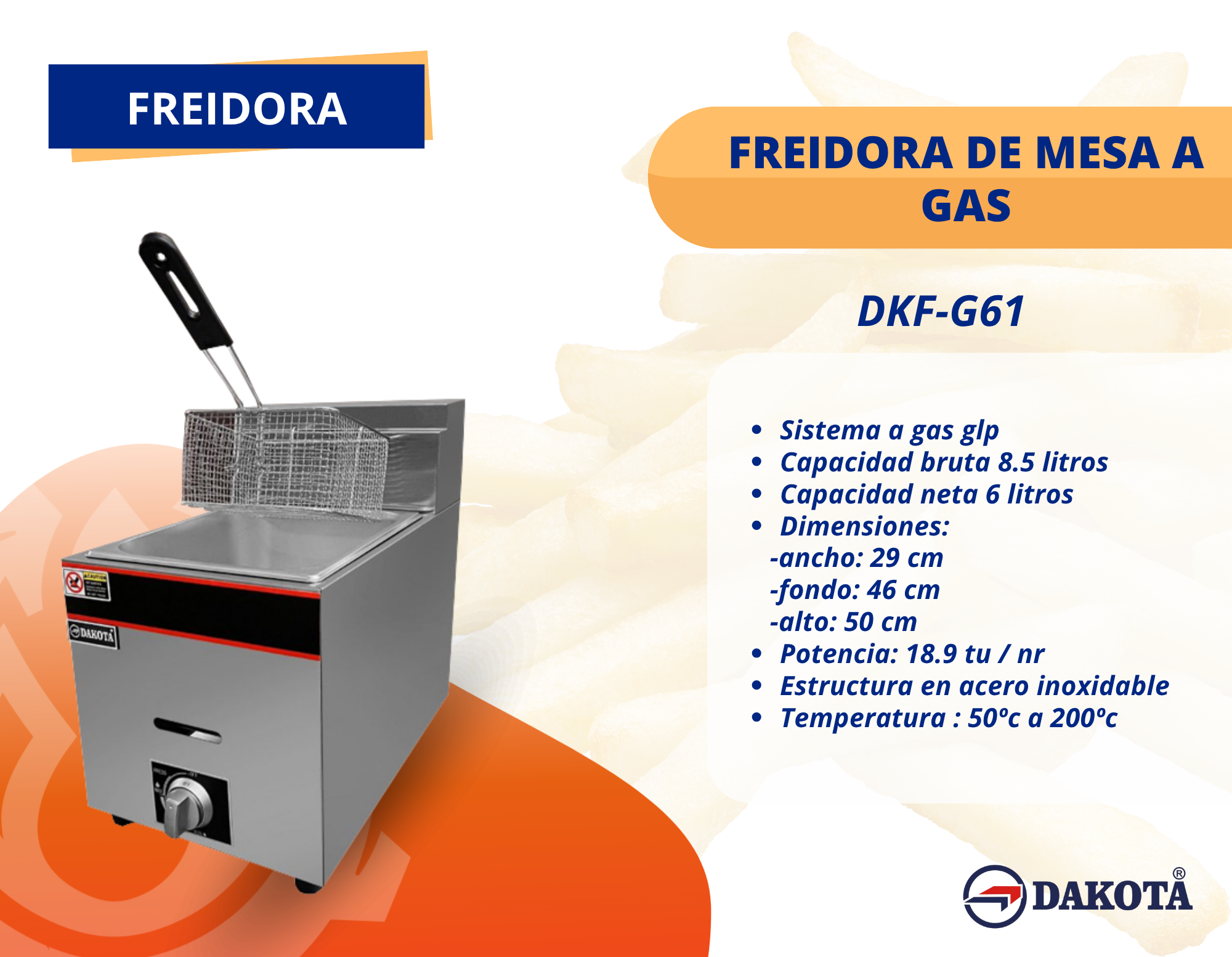 La freidora a gas GLP de 8.5 litros es perfecta para negocios gastronómicos y cocinas profesionales. Con capacidad neta de 6 litros y potencia de 18.9 TU, permite freír grandes porciones con rapidez y eficiencia. Su estructura en acero inoxidable ofrece durabilidad y fácil limpieza. Opera a temperaturas de 50°C a 200°C, ideal para preparar papas, pollo y snacks crujientes. Compacta y funcional, con dimensiones de 29x46x50 cm, es la freidora industrial a gas ideal para optimizar tu producción.