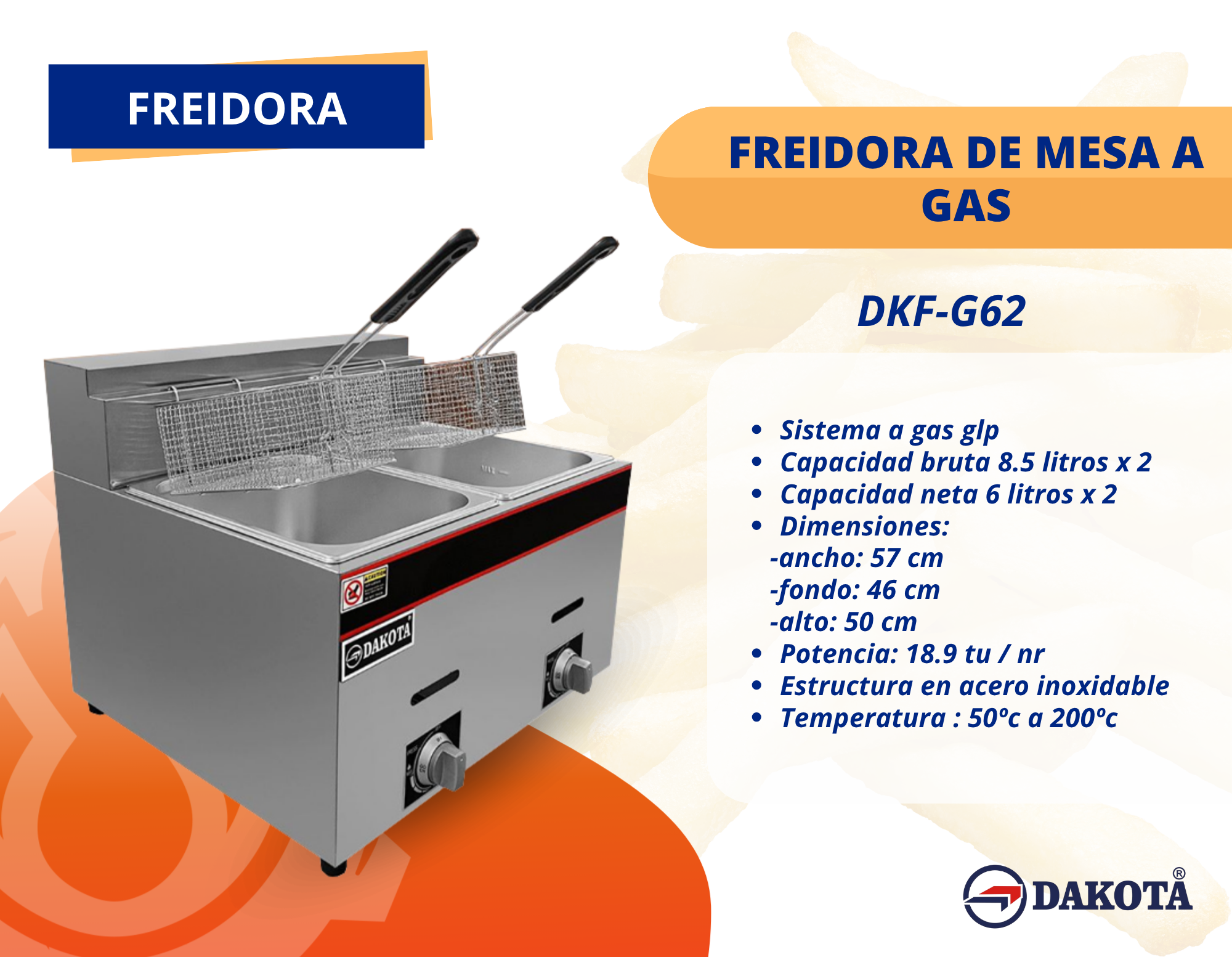 La freidora a gas GLP doble de 8.5 litros x 2 es ideal para restaurantes, pollerías y negocios de comida rápida. Con capacidad neta de 6 litros por tina y potencia de 18.9 TU, garantiza un fritado rápido y uniforme. Su estructura en acero inoxidable asegura resistencia y fácil limpieza, operando a temperaturas de 50°C a 200°C. Con dimensiones de 57x46x50 cm, es una freidora industrial a gas de doble tina perfecta para optimizar la producción sin ocupar mucho espacio.