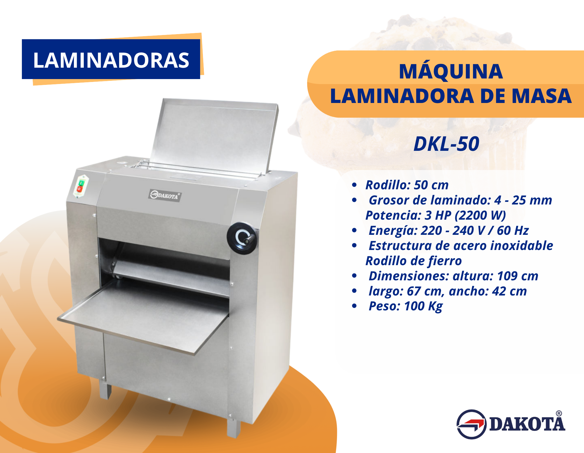 Etiquetas: laminadora de acero inoxidable, laminadora de masa, laminadora eléctrica DK-50R, laminadora panadería, máquina laminadora de masa