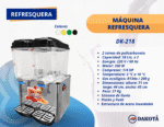 Perfecta para restaurantes, buffets, hoteles y eventos, esta dispensadora doble cuenta con 2 tolvas de policarbonato de 18 litros cada una, ideales para ofrecer distintas bebidas frías. Su sistema de lluvia mantiene el jugo homogéneo y fresco, mientras que el panel con Pistón y Push facilita el servicio rápido. Fabricada en acero inoxidable, combina durabilidad, higiene y diseño profesional.