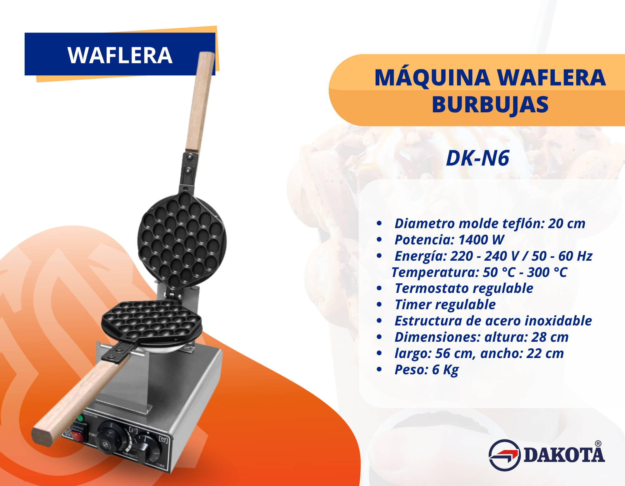 Etiquetas: Máquina Waflera Burbujas, Máquina Waflera Burbujas - DK-N6, máquina waflera redonda, plancha de teflón 20 cm, waflera eléctrica, waflera profesional