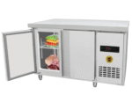 Etiquetas: congeladora comercial 400L, congeladora con 2 puertas abatibles, congeladora de acero inoxidable, congeladora para alimentos, congeladora para bebidas, mesa congeladora para restaurantes, Mesa de trabajo congeladora 400 litros, mesa de trabajo refrigerada