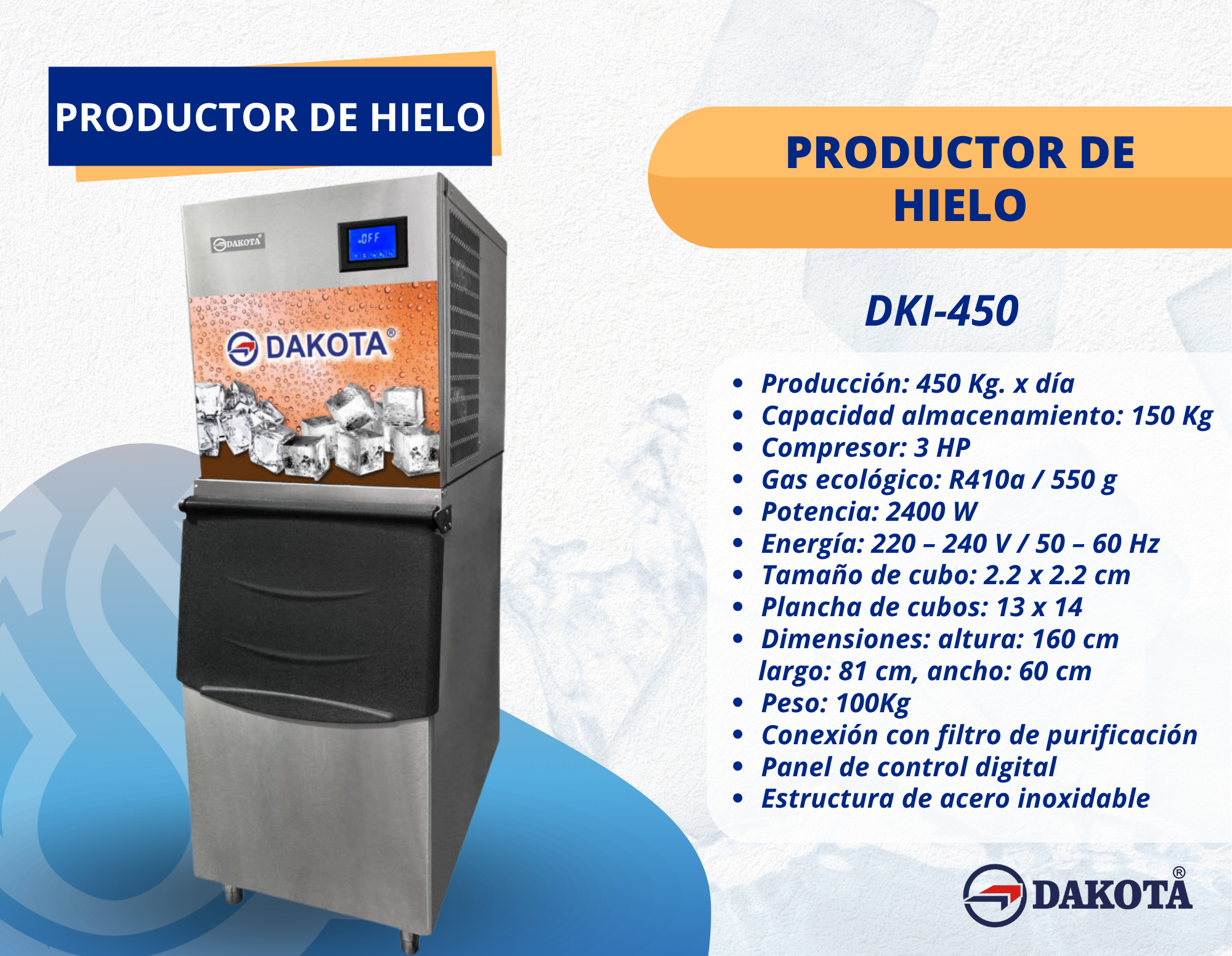 Diseñada para alta producción y uso intensivo, esta máquina elabora hasta 450 kg de hielo por día y cuenta con una capacidad de almacenamiento de 150 kg, ideal para hoteles, restaurantes, pesqueras y servicios de catering. Su potente compresor de 3 HP y panel de control digital garantizan eficiencia, mientras que la estructura de acero inoxidable ofrece máxima durabilidad e higiene.