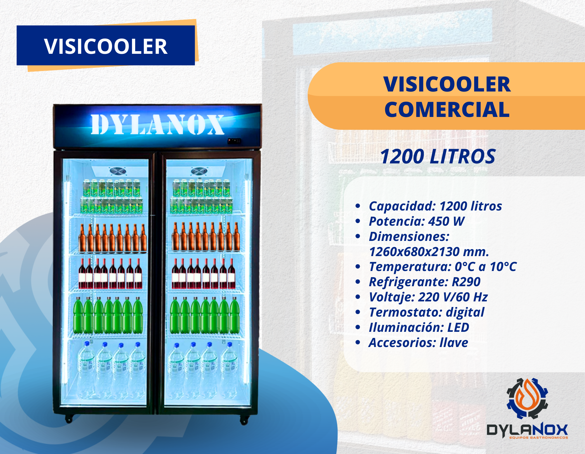 Visicooler Comercial de 1200L con gran capacidad y Control Digital, exhibe y conserva bebidas, helados y alimentos refrigerados con este visicooler comercial de 1200 litros (1260x680x2130 mm). Opera entre 0°C y 10°C con compresor de alta performance, refrigerante R290, iluminación LED, termostato digital y llave de seguridad. La opción ideal en exhibidores y congeladores comerciales para negocios de alto volumen.