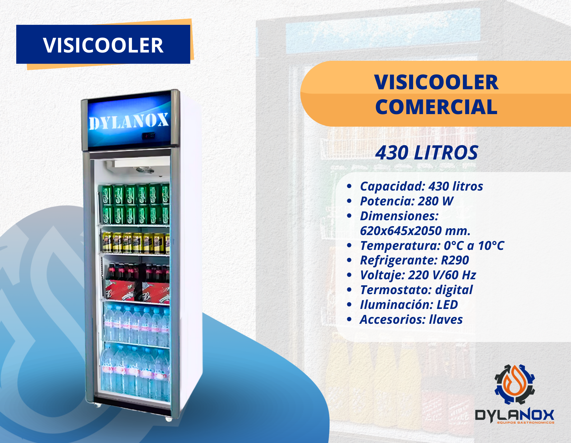 Visicooler Comercial 430L con alta eficiencia y Control Digital, Conserva bebidas, helados y alimentos refrigerados entre 0°C y 10°C con este visicooler de 430 litros. Incluye compresor de alta performance, refrigerante R290, LED, termostato digital y llaves de seguridad, ideal para negocios que buscan calidad en exhibidores y congeladores comerciales.